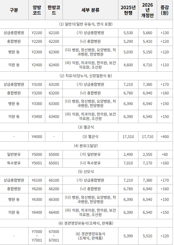 가. 기본식사 일반식 / 치료식 / 멸균식 / 분유 / 산모식 / 경관영양유동식