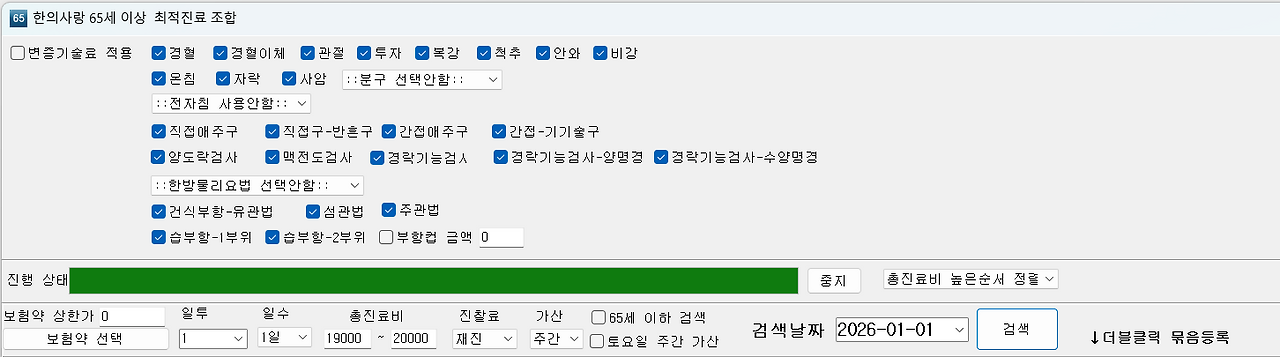 검색 날짜를 2026년으로 설정하여 조회하시면 2026년 65세 최적진료 내역을 확인하실 수 있습니다.