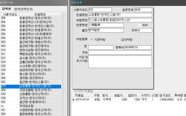 기초자료실 등록항목 ( 한문명칭 ) 한문이 정상적으로 입력이 되있어야