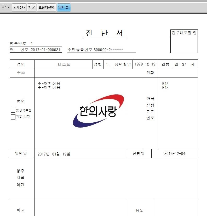 [사용자의견] 진료확인서 출력시 로고 인쇄 관련문의