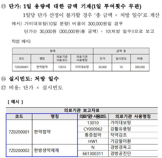※ 비만약침, 탈모약침 등 미용목적의 약침술은 제출 대상 아님