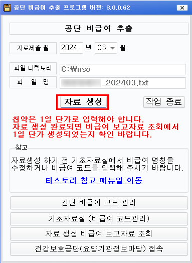 기초자료실 비급여 코드 입력 했다면 '자료 생성' 버튼 클릭.