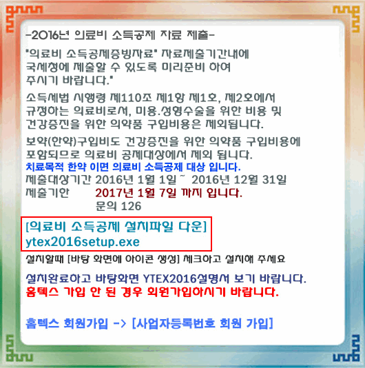 [팝업] 2016년 의료비 소득공제 안내