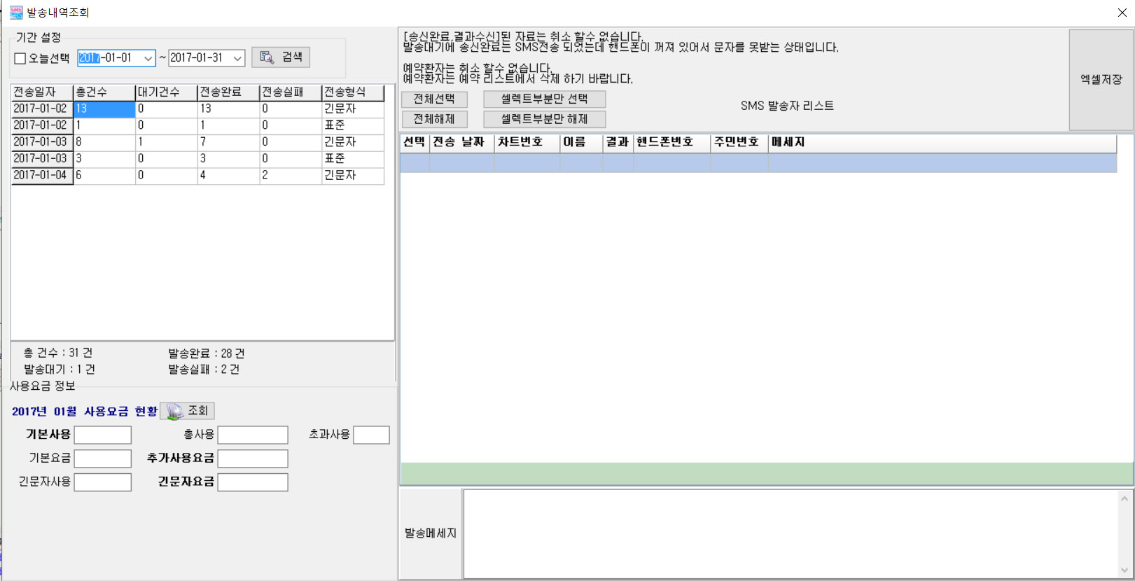 기존에 SMS발송취소시 하나씩 취소해야하는 어려움이있어 발송 목록 일괄 취소 기능이 추가되었습니다.