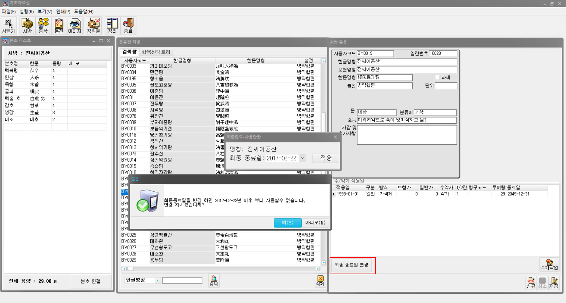 보험 약재 [정]  적용시 g단위로 나오는 오류가 발견되어 일부 수정되었습니다.