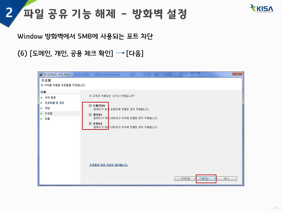 *붙임. 감염 경로 차단 방법(방화벽 설정 변경)