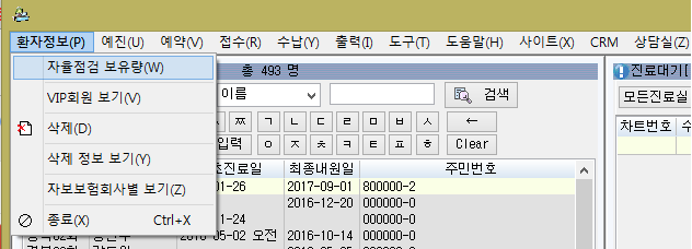 [접수실] 상단 - [환자정보] - [자율점검 보유량] 선택