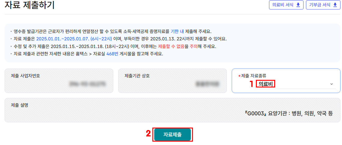 2025년 의료비 소득공제 자료 제출