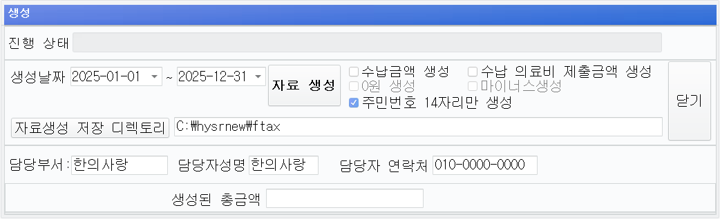 확인수납할때 의료비 제출금액을 정확히 입력한 곳은  [수납 의료비 제출금액 생성] 체크해서 생성하기 바랍니다.