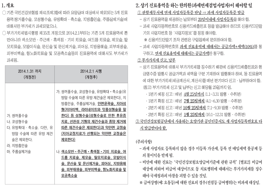 [팝업] 미용·성형 진료용역 부가세 과세 확대 시행 (2014. 2. 1부터)
