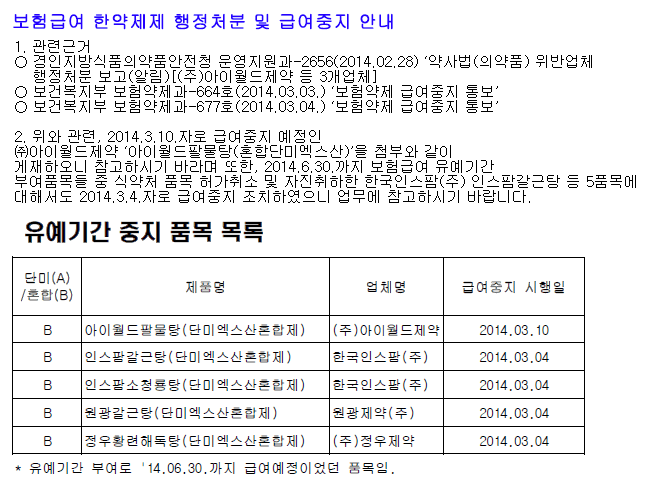 [팝업] 3월 5일 팝업 보험급여 한약제제 행정처분 및 급여중지 안내