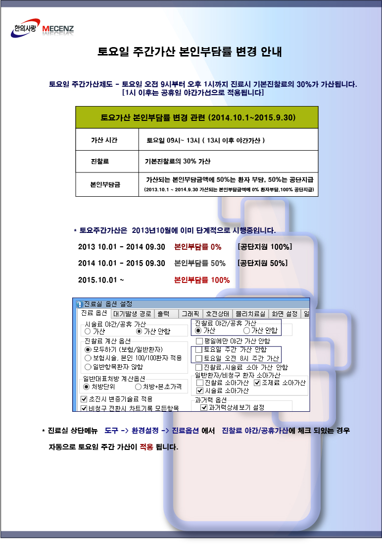[팝업] 10월 1일 토요일주간가산 본인부담률변경 안내