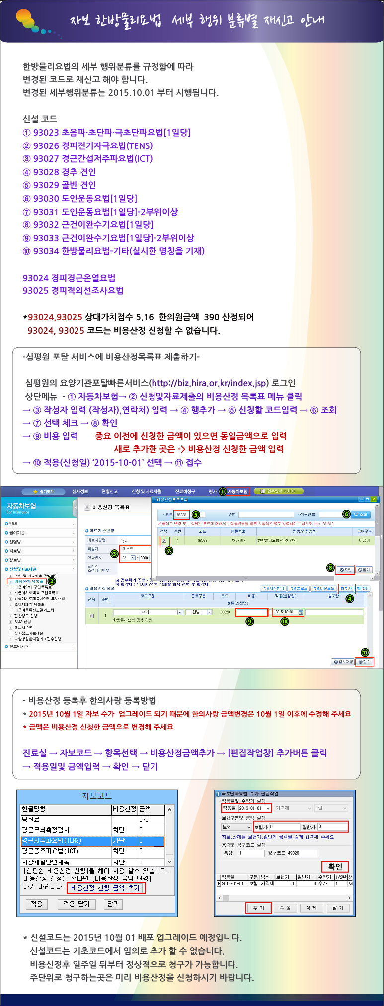 자보 한방물리요법 세부 행위 분류별 재신고 안내