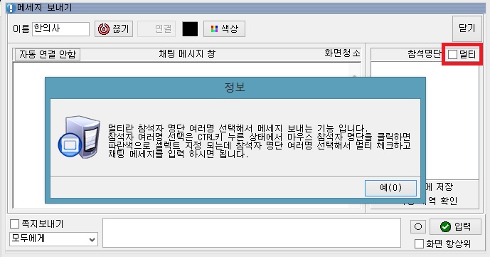 3. 메세지(채팅) 기능 추가 - 접수실,진료실 다중채팅(멀티보내기) 기능이 추가되었습니다.