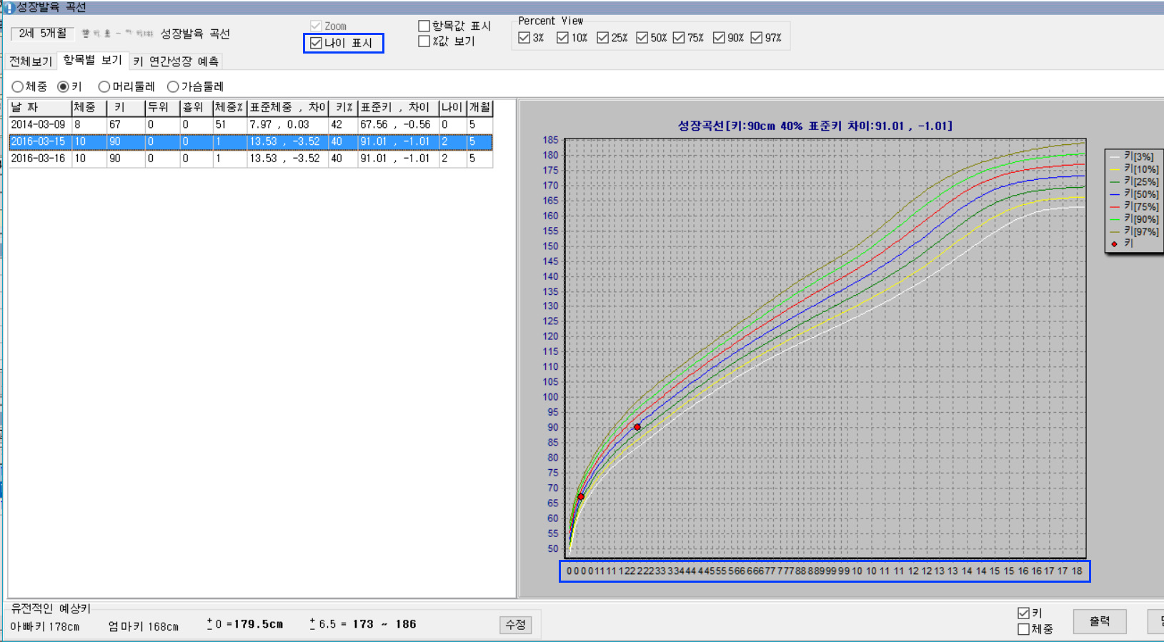 3. 성장 발육곡선 업그레이드 - 성장발육곡선항목에 나이가 추가되었습니다.