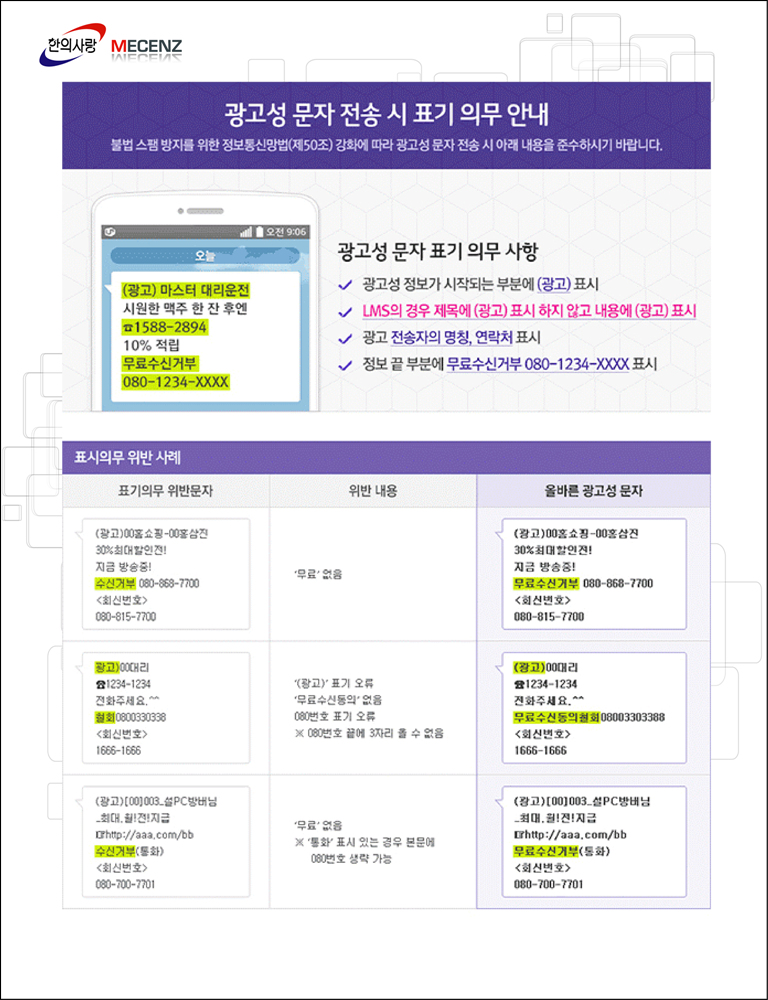 [팝업] 2016년 7월 21일 SMS 광고성 문자 전송시 표기 의무 안내